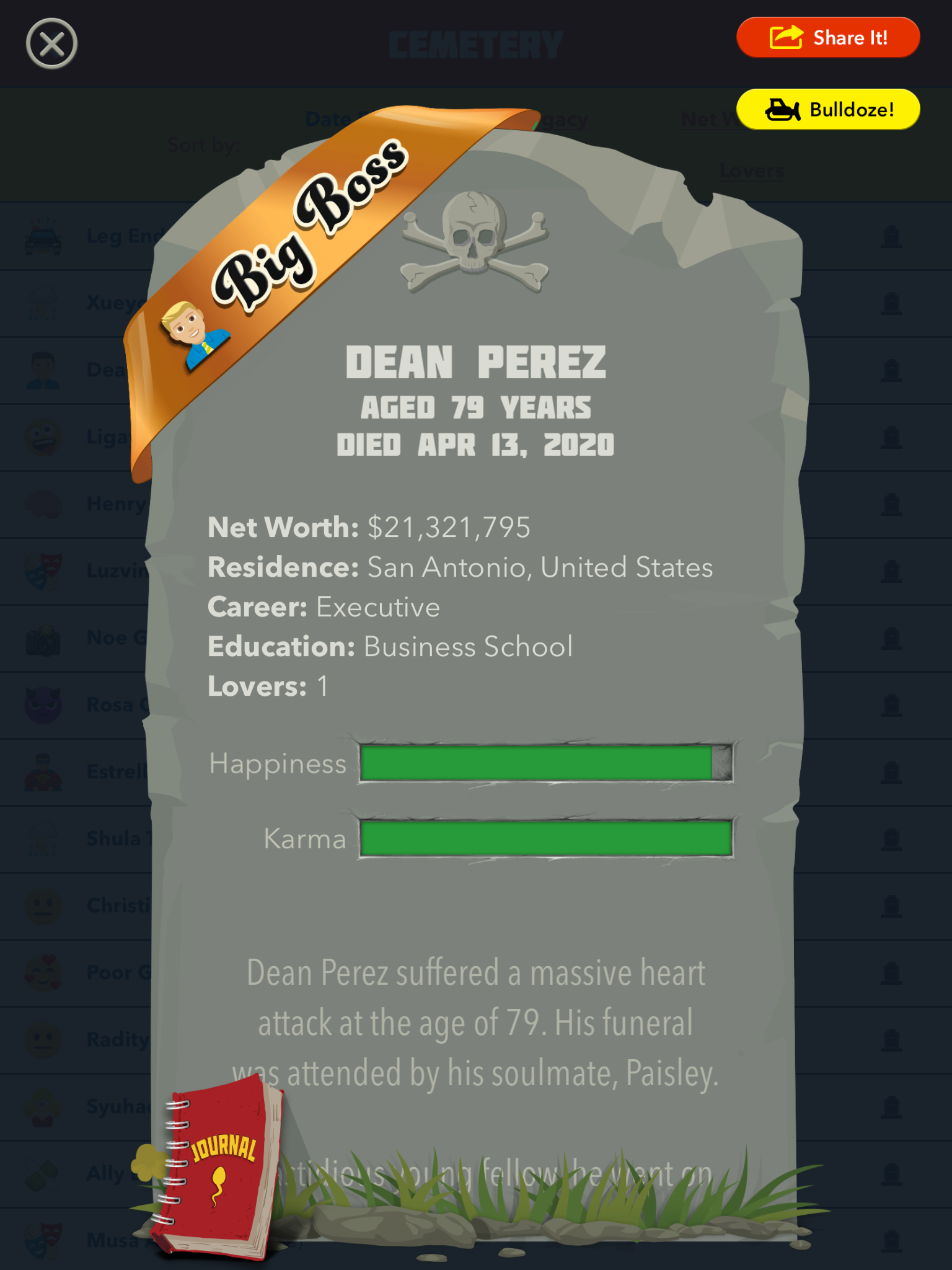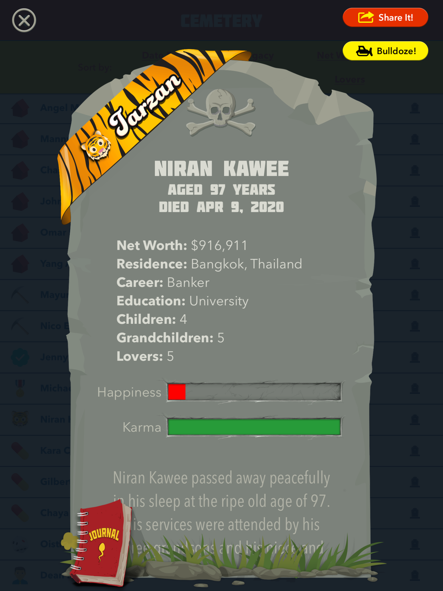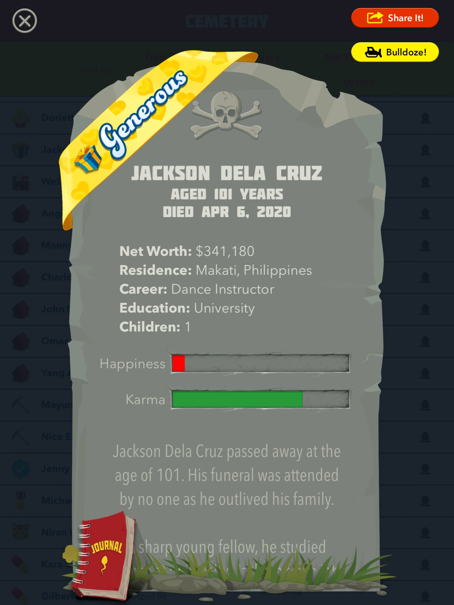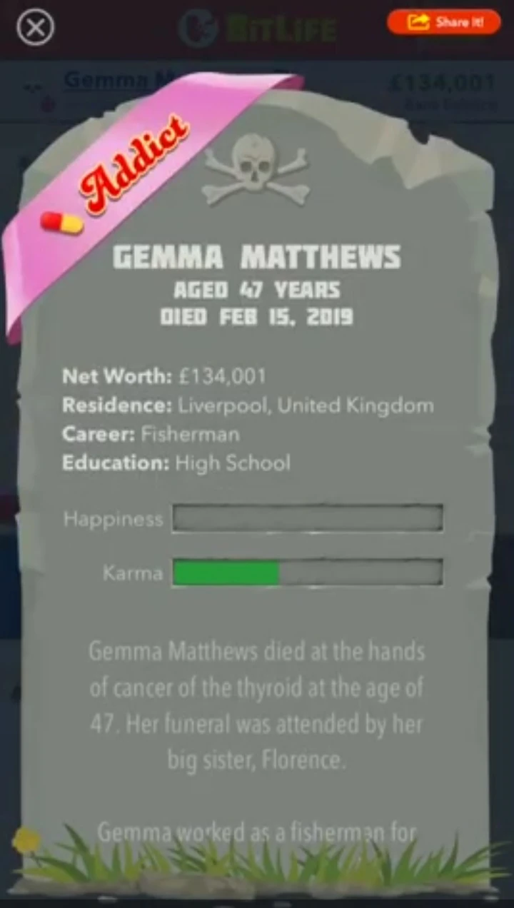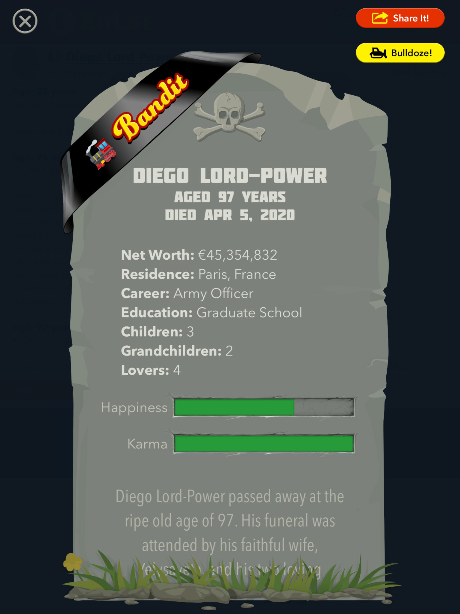 Notes: Even if you live past zero, you can still get it if you surrender and don't do anything prominent in your life. The ribbon can also be achieved by dying with negative net worth if the average of your smarts and looks is over 50%. Dying by prison execution at a young age while doing nothing significant in the life other than committing the crime that gave your character the execution will also give them this ribbon.